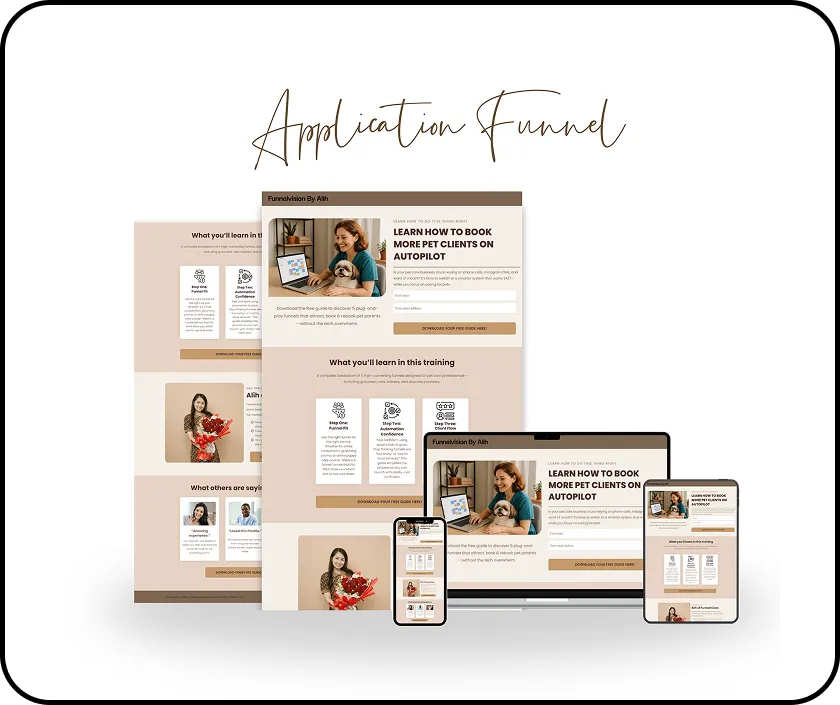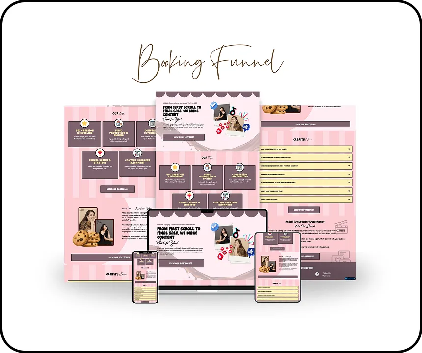 Each funnel element, including layout, copy, and call-to-action, is strategically structured using conversion psychology to increase sign-ups, sales, and client bookings.
