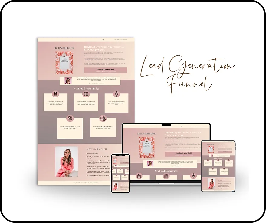 Your funnel pages are designed to match your brand, visually stunning, easy to navigate, and optimized for conversion. Each page (landing, sales, checkout, and thank you) is crafted to guide visitors toward action.